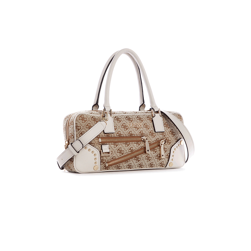 GUESS Women's Frankie Brown Logo East West Satchel Top Handle Bag